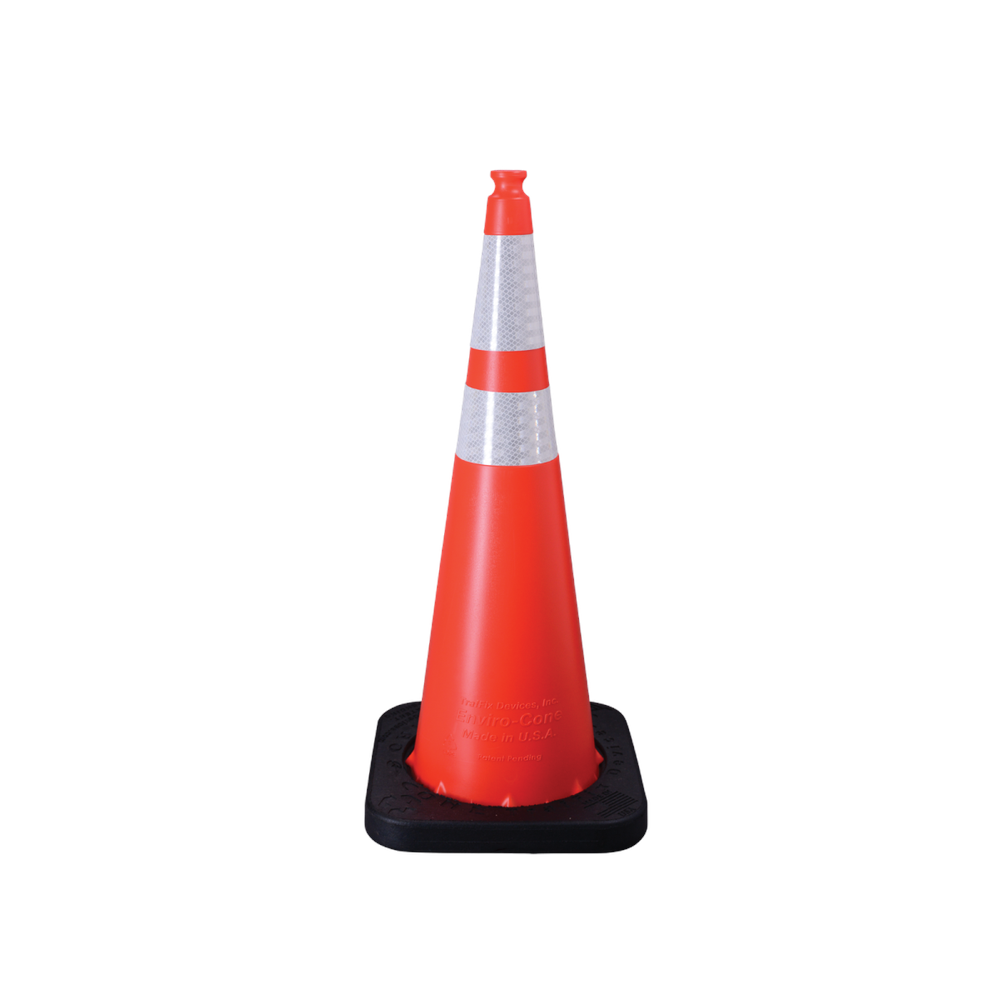 The Enviro-Cone is a traffic safety cone designed for superior all-weather performance and increased lifespan compared to PVC cones. It is MUTCD compliant and made from environmentally friendly materials.