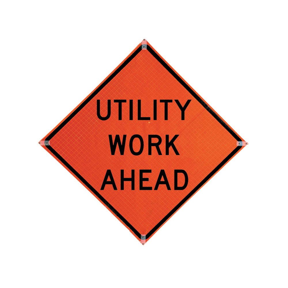 Traffix Roll Up Sign, 36x36 Reflective Utility Work Ahead W21-7