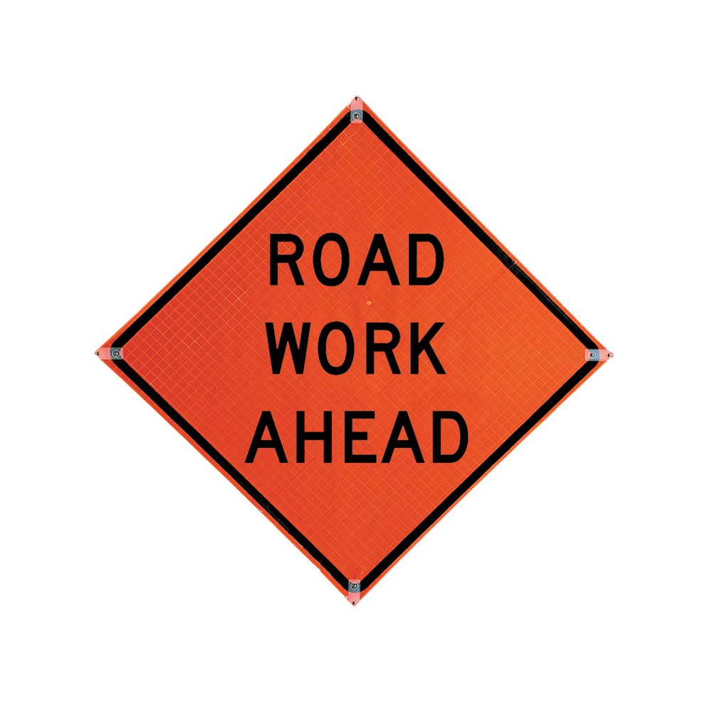 Traffix Roll Up Sign, 48x48 Reflective PP HF Road Work Ahead