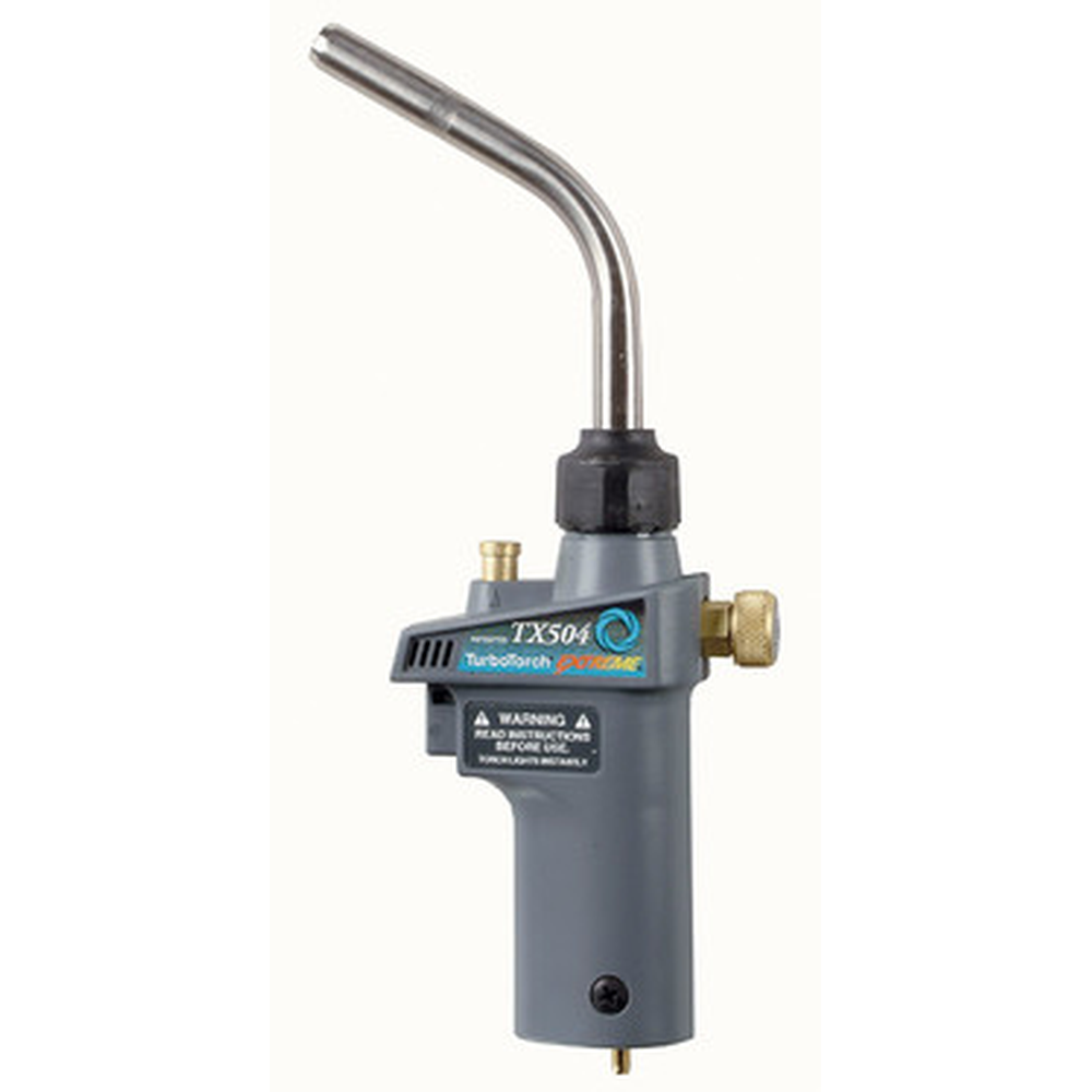 The TurboTorch TX503 hand torch features Extreme Swirl Technology for higher heat output and faster brazing. It is self-lighting and compatible with MAP-Pro and LP gases.
