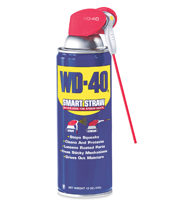 WD-40® Multi-Use Product protects metal from rust and corrosion, penetrates stuck parts, displaces moisture and lubricates almost anything. Its permanently attached Smart Straw sprays 2 ways.