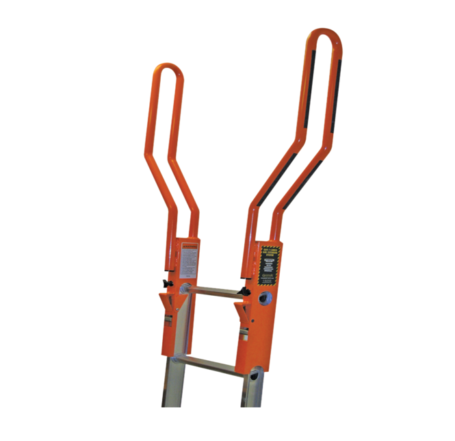 This patented piece of equipment assists workers in complying with OSHA standard 1926.1053(b), which states, “When portable ladders are used for access to an upper landing surface, the ladder side rails shall extend at least 3 feet (.9 m) above the upper landing surface to which the ladder is used to gain access.”