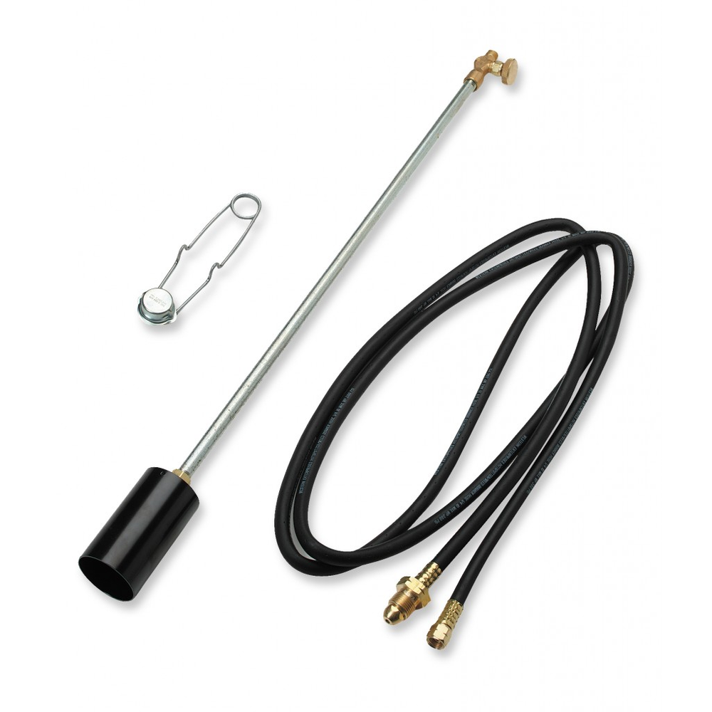 The Hotspotter All Purpose Propane Torch / Weed Burner is a high-output tool designed for weed control, thawing frozen pipes, melting ice, and other outdoor tasks. It delivers 500,000 BTU/H and features a brass control valve for precise flame adjustment.