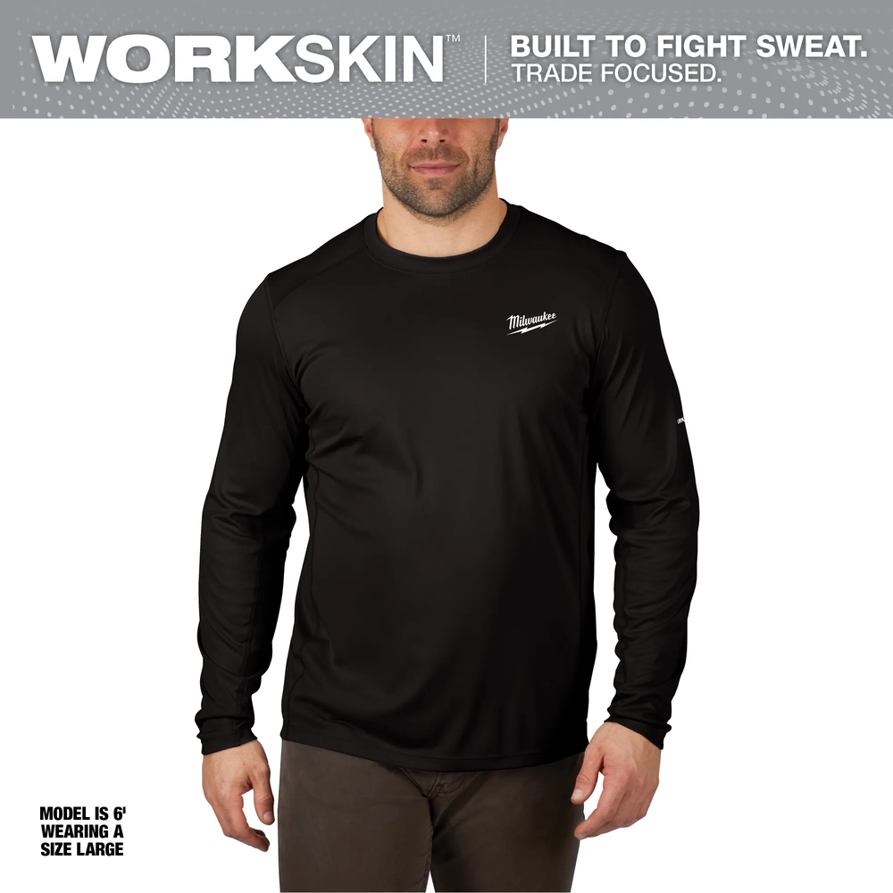 The Milwaukee WORKSKIN Lightweight Performance Long Sleeve Shirt is engineered for tradesmen who demand a high-performance base layer that stays dry and cool throughout the workday. Built to withstand the rigors of the job site, this shirt features advanced moisture-wicking fabric and extended sweat zones to accelerate drying. Its lightweight, 100% polyester construction resists pilling and wrinkles, ensuring a professional appearance and long-lasting durability even in the toughest environments.