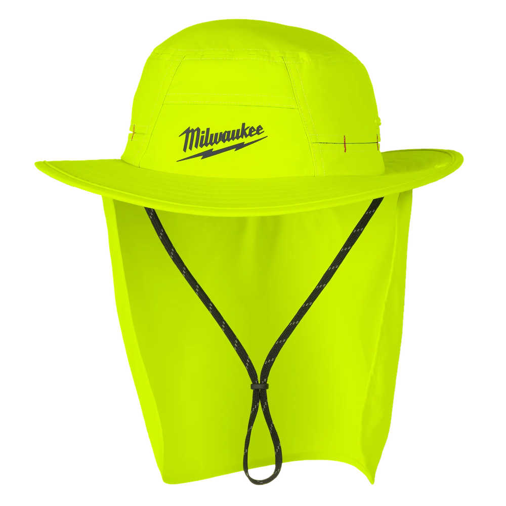 The Milwaukee WORKSKIN Sunshade Hat is part of the professional WORKSKIN Collection, specifically engineered to fight sweat and provide superior sun protection on the jobsite. This high-visibility yellow hat features a wide 3-inch full brim and a UPF 50+ rating to block harmful UV rays during long outdoor shifts. Designed for maximum versatility, it includes a detachable neck shade that can be stored in an onboard pocket or clipped onto any standard ball cap for modular coverage. The lightweight, breathable fabric combined with a vented crown promotes airflow to keep you cool in demanding environments.
