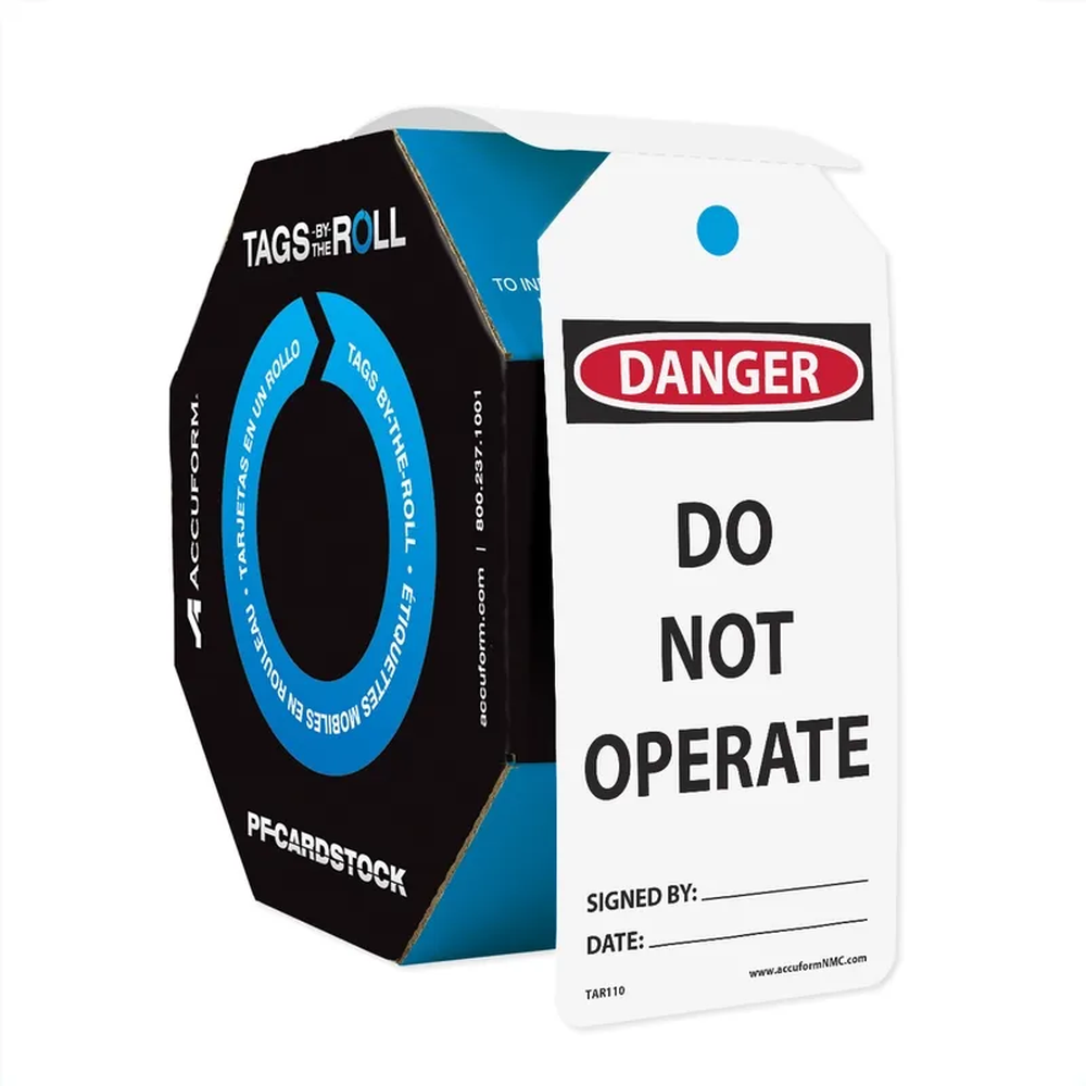 These tags help companies comply with OSHA Lockout/Tagout standards to prevent accidental equipment startup. They come in convenient roll dispensers for easy access and portability.