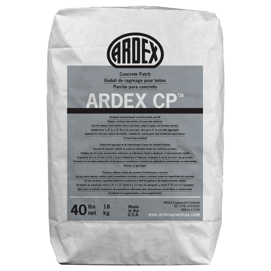 ARDEX CP™ is a trowel-grade, cementitious topping for filling and repairing areas of indoor and outdoor concrete above, on or below grade.