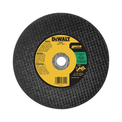 Featuring highly concentrated, high-performance aluminum oxide grain for quick cuts and long life, DEWALT Type 1 Metal Cutting Chop Saw Wheels are ideal for all ferrous metal, including steel, bar stock, tubing, and studs. 2 full sheets of fiberglass deliver durability and safety. An exclusive material mix ensures long wheel life.