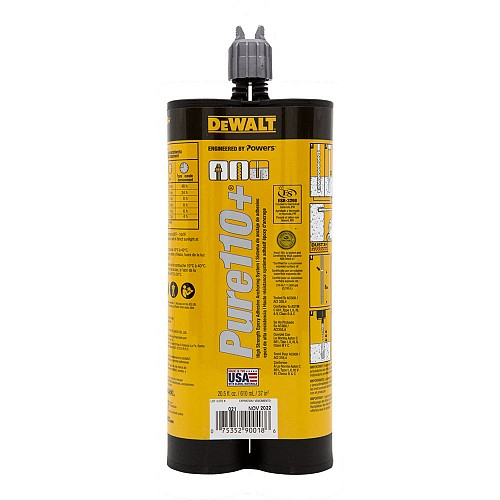 The Pure110+ is a two-component, high strength adhesive anchoring system. The system includes injection adhesive in plastic cartridges, mixing nozzles, dispensing tools and hole cleaning equipment. Pure110+ is designed for bonding threaded rod and reinforcing bar hardware into drilled holes in concrete base materials and for post-installed reinforcing bar connections (rebar development).