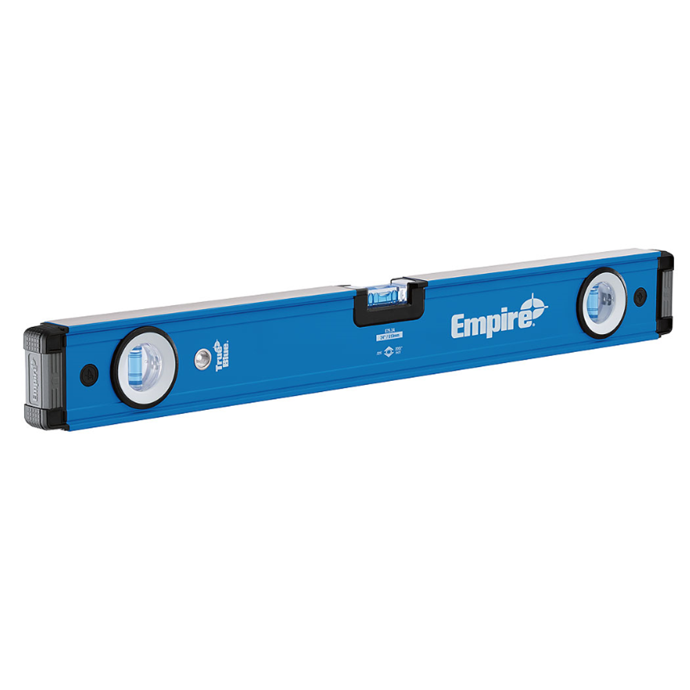 As the dominant market leader in levels, squares and marking products, Empire Level is committed to delivering innovative solutions designed to satisfy the needs of the modern jobsite. The e75 Series True Blue Box Level offers superior performance in the key areas of functionality and durability. The box levels are constructed with an all-metal frame as well as top and bottom precision-milled edges to deliver accuracy to within 0.0005 in./inch in all working positions. For added durability, the e75 series features a reinforced locking system that secures the vial settings and guarantees long-life accuracy. The e75 box level also equipped with rubber shock-resistant endcaps that are tool-free removable to enhance scribing performance into corners. Magnetic models boast high-strength rare earth magnets for superior holding power when working with door frames, steel studs, ferrous pipe and other common metal-working applications.