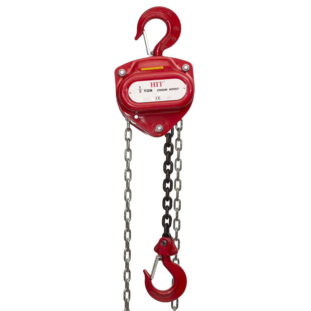 The HIT H-100 series manual chain hoist features all steel construction, making it compact and lightweight for maximum strength and easy handling. It is an ideal solution for construction, industrial lifting, rigging, and manufacturing operations. Each unit is load tested to 1.5 times the rated load and meets rigorous safety standards including OSHA and ANSI.