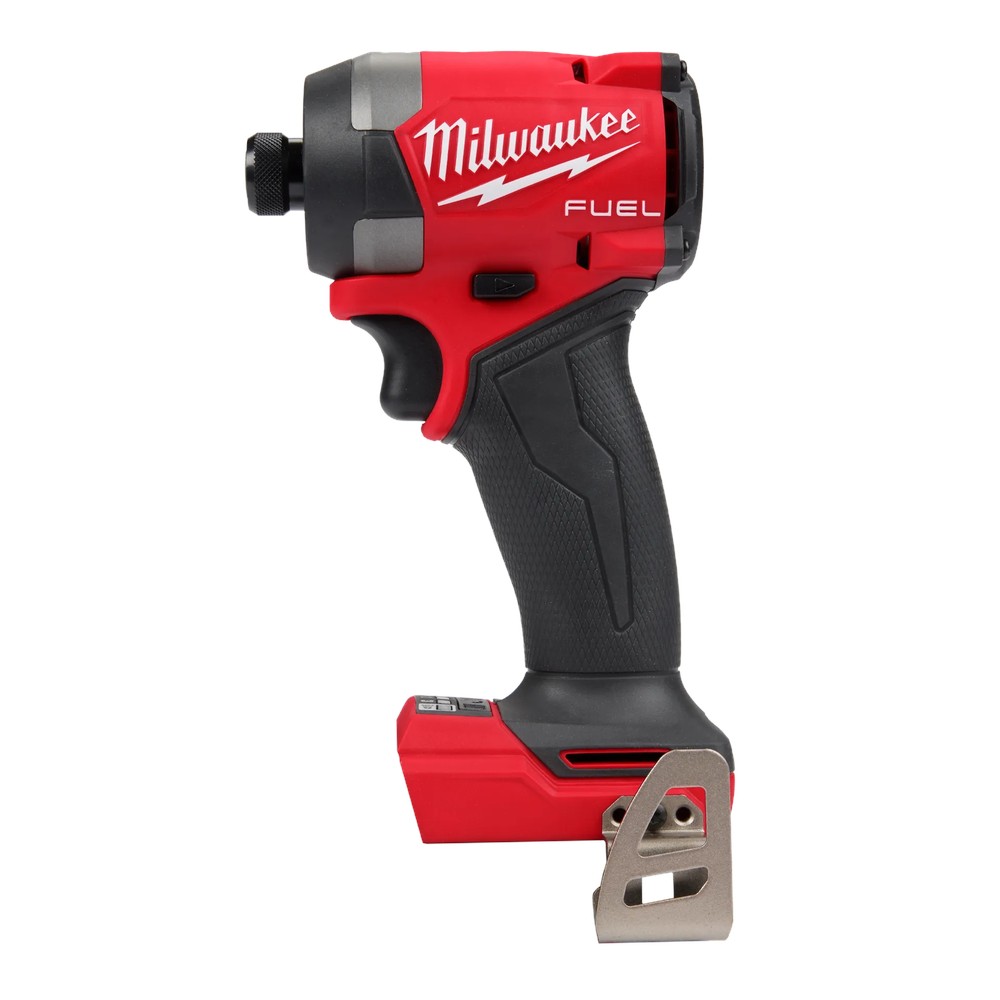 The Milwaukee 2953-20 M18 FUEL 1/4' Hex Impact Driver is engineered to be the most powerful and fastest driving impact driver in its class. Featuring the POWERSTATE Brushless motor, it delivers up to 2,000 in-lbs of torque and 3,900 RPM to maximize productivity on the most demanding jobsite applications. This tool provides ultimate trigger control for smooth acceleration, preventing damage to fasteners and materials while maintaining a compact profile for work in tight spaces.