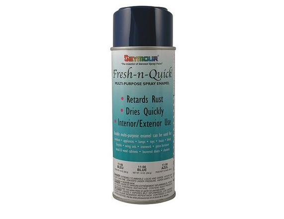 A high quality spray paint available in a wide range of popular colors and economically priced. Black and white available in a gloss or a flat finish. It covers well, dries fast, and holds up well outdoors. Bare or rusted surfaces should be cleaned and primed with Fresh-N-Quick Gray Primer, #11-15.